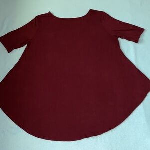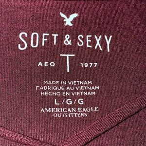 AMERICAN EAGLE OUTFITTERS Soft & Sexy lace up detail v-neck, burgundy wine color, high low and flowy short sleeve. Stock photo shows a longer sleeve.