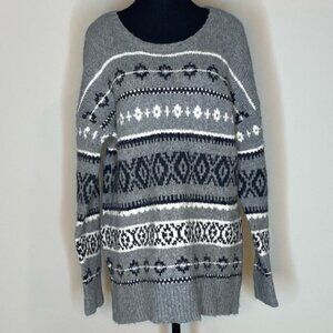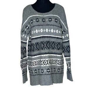 AMERICAN EAGLE OUTFITTERS Womens Grey Knit Cowichan Fair Isle Sweater
