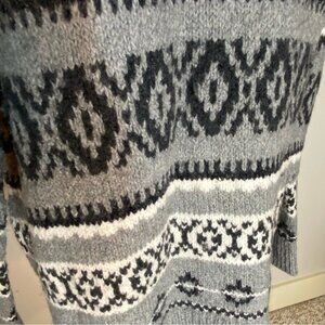 Super warm and cozy grey with black and white design cowichan style pullover sweater