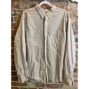 AMERICAN EAGLE • Off White or Light Gray / Black Mini Square Polkadots Long Sleeve Button-up Collared 100% Cotton Shirt • Men’s Size XXL