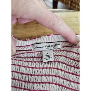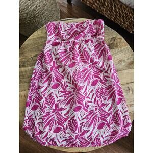 AMERICAN EAGLE Outfitters Crinkled Strapless Dress 6 Pink & White Tropical Beach