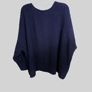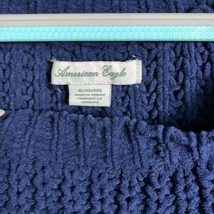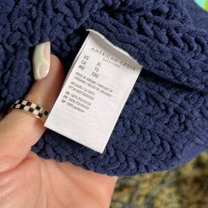 AMERICAN EAGLE Oversized Chunky Knit Sweater Crew Neck Navy Cozycore XL Boxy