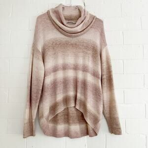 Mauve pink and tan ombre/striped Oversized Dreamspun' cowl turtleneck sweater by America Eagle.