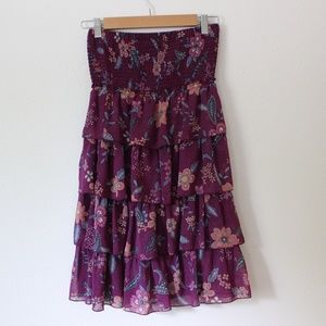 AEO STRAPLESS PURPLE FLORAL TIERED RUFFLE DRESS
