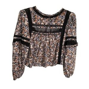 AMERICAN EAGLE Peasant Ditzy Floral Open Back Long Sleeve Crop Top Small