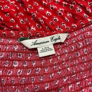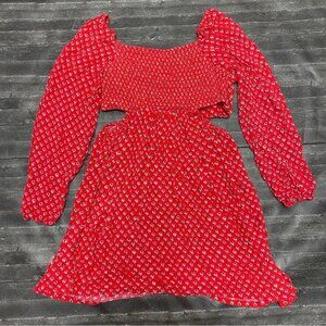 American Eagle Red Floral Cut Out Long Sleeve Dress