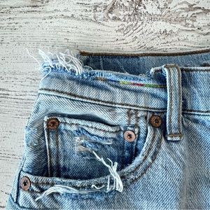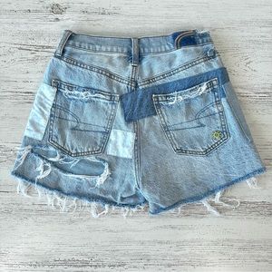 AMERICAN EAGLE Rainbow Patchwork Distressed Highest Rise 90s Boyfriend Shorts 00