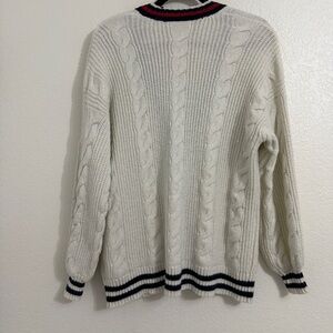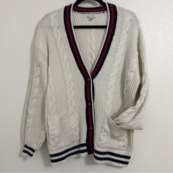 AMERICAN EAGLE Red White Blue Preppy Chunky Cable Knit Button Cardigan Small
