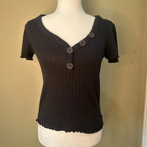 AMERICAN EAGLE Rib Knit Henley Button Top T Shirt - size small