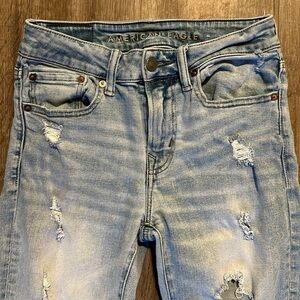 STYLE: Distressed Mens American Eagle skinny jeans, light wash, Next Level Airflex
