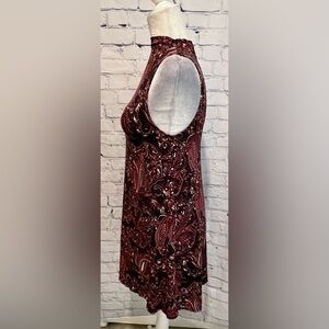 Elevate your casual wardrobe with this stunning T-shirt dress from American Eagle Outfitters. The floral pattern in black, mauve and pink, along with the keyhole back detail, adds a touch of sexy sophistication to this knee-length dress. The Soft & Sexy material, made of viscose, ensures comfort and style for any occasion. This dress is sized Regular and fits a Medium. Ideal for women, this dress can be worn on casual occasions. The sleeveless design makes it ideal for warmer weather. Don't miss this opportunity to add a stylish and elegant T-shirt dress to your collection. 16 inches pit to fit and 35 inches long. Smoke free home.