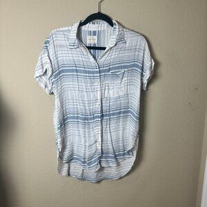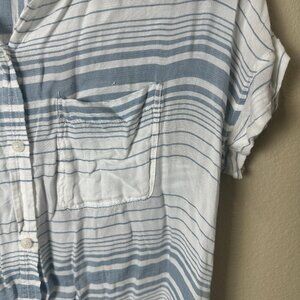 AMERICAN EAGLE Semi Sheer Blue White Striped Gauze / Linen Blouse Top Size Small