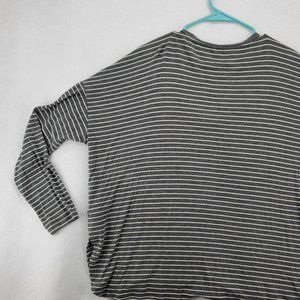 AMERICAN EAGLE Shirt Women's Long Sleeve V-Neck Striped Gray Large