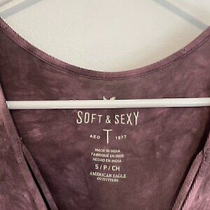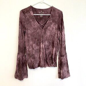 AMERICAN EAGLE Soft Sexy T Tie Dye Faux Wrap Top Purple Surplice Long Sleeve S