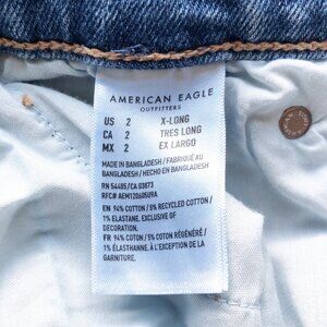 American Eagle Stretch ‘90s Straight jeans. Button & zip closure, 5 pocket, size 2 x-long, cotton elastane blend, some puckering across leg-see photo. Smoke and pet free home.