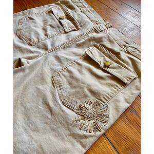 AMERICAN EAGLE Stretch Yellow Button-Fly Cotton Shorts Womens size 8. Featuring slash pockets, rear button pockets, floral embroidery, stretch, raw hem and a button-fly closure.