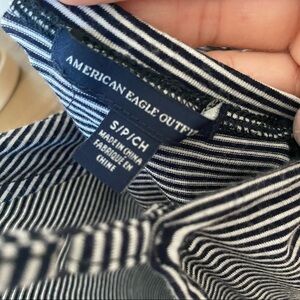 American eagle striped romper. Adjustable spaghetti straps with a crossover V neckline. Romper shorts with an elastic waistband.