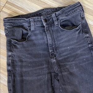 AMERICAN EAGLE Super Hi Rise Jegging crop size women’s 6 short! 10 inch rise and 24 inch inseam! Frayed hem! Very stretchy jean material! The only signs of wear is a few tiny white spots but adds to the distressed look! Bundle and save!