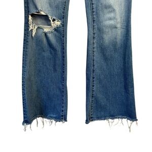 AMERICAN EAGLE Super High Rise Flare Distressed Jeans Size 6 Raw Hem