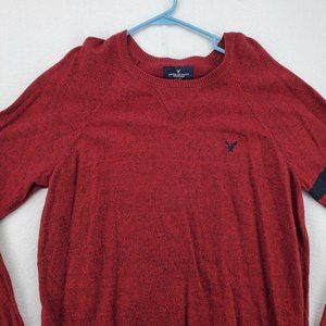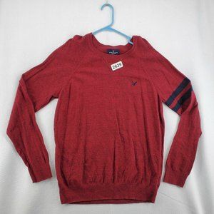 AMERICAN EAGLE Sweater Men's Long Sleeve Crew Neck Tight Knit Pullover Red Large