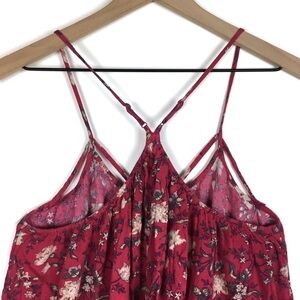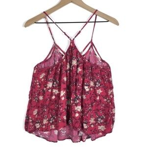 AMERICAN EAGLE Tank Top Cami Flowy Strappy Floral Raspberry Summer Size Medium