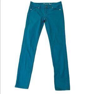 AMERICAN EAGLE Teal Skinny Stretch Mid Rise Denim Jean 2