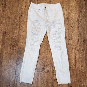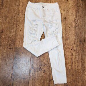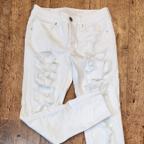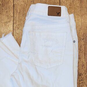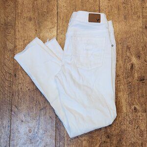 AMERICAN EAGLE Tom Girl Stretch Distressed Button Fly White Jeans - Sz 2