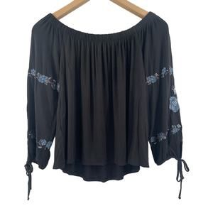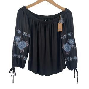 AMERICAN EAGLE Top Size Small Black Embroidery Embroidered Blue NWT Peasant