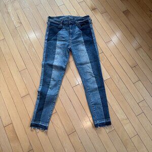 AMERICAN EAGLE Two Tone Super Stretch Hi-Rise Jegging Crop Raw Hem Jeans Size 4