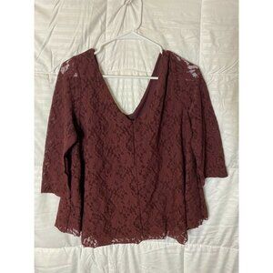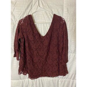 AMERICAN EAGLE WOMENS JUNIORS LACE TOP SHIRT BLOUSE DEEP PURPLE SIZE LARGE Y2K