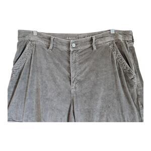 AMERICAN EAGLE Women's Plus Size 18 Corduroy Cargo Pants - Sage Green, 6 Pockets, Button & Zipper, Wide Leg, High Rise, 76% Cotton, 22% Viscose, 2% Elastane