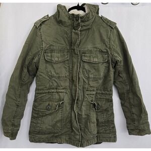 AMERICAN EAGLE Women S Sherpa Lined Military Utility Anorak Jacket Green Hooded