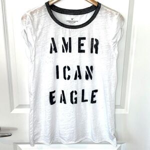 AMERICAN EAGLE | Women’s One Size White Shirt with Black Collar