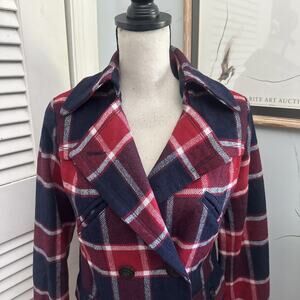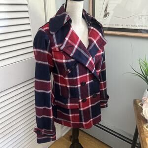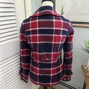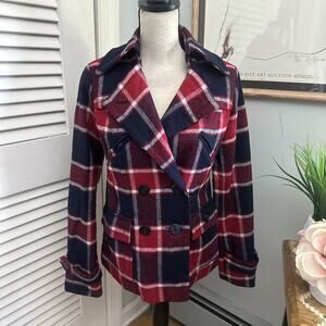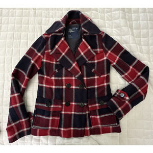 AMERICAN EAGLE Womens Pea Coat Small Blue Red Plaid Outdoor Preppy Classic