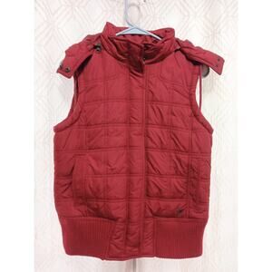 AMERICAN EAGLE Women's Puffer Vest With Removable Hood Red Size Medium