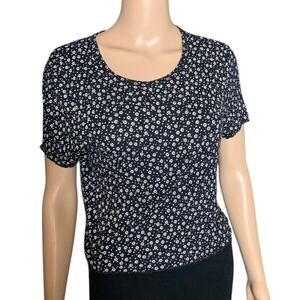 AMERICAN EAGLE Women's Size Large Cropped Top Soft & Sexy Rib Black Floral AOP