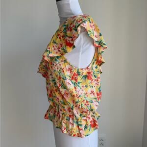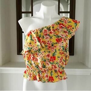 AMERICAN EAGLE YELLOW FLORAL ONE SHOULDER BLOUSE RUFFLE NECKLINE MEDIUM