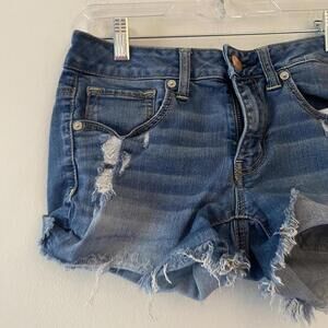 AMERICAN EAGLE distressed midi jean shorts