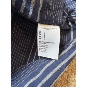 AMERICAN EAGLE short sleeve; button up collared shirt; size Large; 100% cotton, Blue striped pattern;