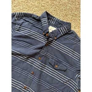AMERICAN EAGLE short sleeve; button up collared shirt; size Large; 100% cotton, Blue striped pattern;