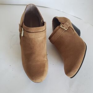 AMERICAN EAGLE sz 11 FAUX SUEDE ANKLE ZIPPER BOOTS tan women, block heels