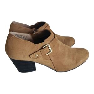 AMERICAN EAGLE sz 11 FAUX SUEDE buckle zipper ANKLE BOOTS block heel tan women