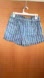 Stylish blue & white striped denim shorts with a comfortable fit. American Eagle Striped Paper Bag Denim Shorts. The versatile paperbag short goes great with a fitted shirt, crop top, or matching patterns. Soft cotton fabric. Tie paperbag waist design. 2- front and back pockets. Striped design and medium wash with a rolled hem. Perfect for casual outings, or everyday streetwear.