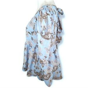 AMERICAN EAGLE OUTFITTERS BLUE & PINK PAISLY PEPLUM BABYDOLL TOP SZ.XS EUC.