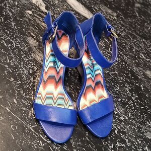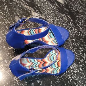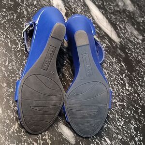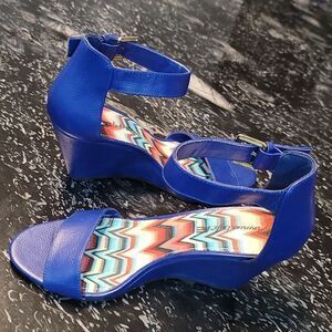 AMERICAN EAGLE WOMEN'S Classic Heels SANDAL ANKLE STRAP OPEN TOE SIZE 7W COLOR ROYAL BLUE WEDGE SANDAL Step out in style with these chic wedge sandals. Perfect for any occasion these shoes offer both comfort and elegance.all man made materials lining upper balance man made materials heel height measurements approximately 3"inched THIS ITEM IS PRE-OWNED EXCELLENT CONDITION WITH ONLY LIGHT SIGNS OF WEAR IF ANY CHECK THE PICTURES