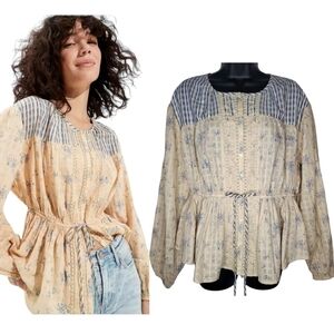 AMERICAN Eagle Dainty Floral Lace Detail Long-Sleeve Tie-Front Tunic Size S