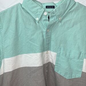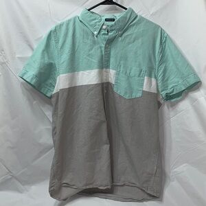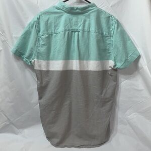American Eagle Sea Foam and Gray Button Up Collared Short Sleeve Shirt Size L