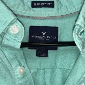 AMERICAN Eagle Sea Foam and Gray Button Up Collared Short Sleeve Shirt Size L