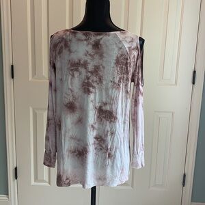 AMERICAN Eagle Soft and Sexy Cold Shoulder Mauve Tie Dye Long Sleeve Top