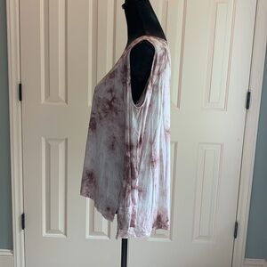 Tie dye long sleeve tee with cold shoulder cut outs. Pretty mauve/tan and cream color combo